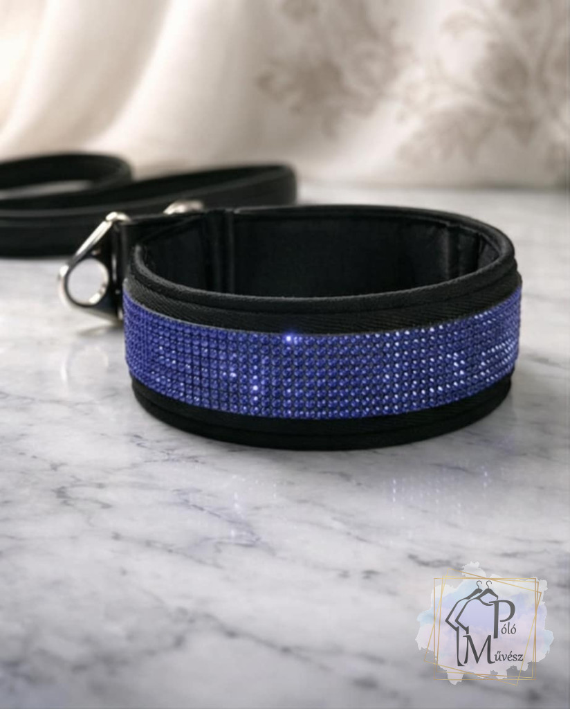 Blue Moon Luxus Bársony Félfojtós Nyakörv strasszokkal - Strasszos Csillogó Kutya Nyakörv