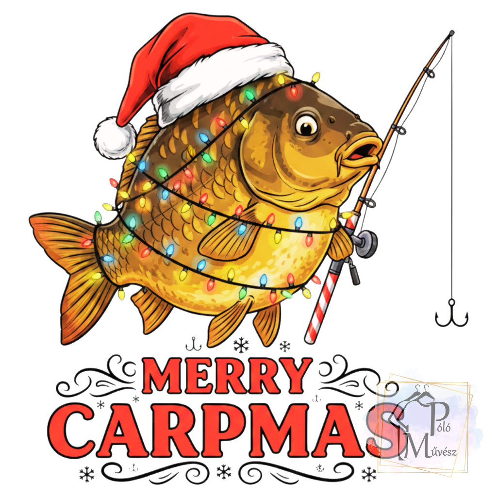Merry Carpmas Póló - Karácsonyi Ponty Horgász póló - Horgász pulcsi - Halas Póló
